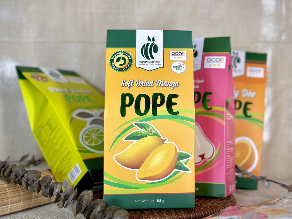 Công ty Ngọc Phụng luôn đề cao chất lượng và quan tâm đến sức khỏe của khách hàng, với khát vọng mang đến những sản phẩm hoàn toàn từ thiên nhiên, tươi ngon và an toàn. Xoài Sấy Dẻo POPE đã có mặt trên các kệ hàng đặc sản, sàn thương mại điện tử, và trở thành món quà đầy ý nghĩa trong các dịp lễ. Thưởng thức sản phẩm của chúng tôi, quý khách hàng sẽ cảm nhận được hương vị rất riêng và đặc trưng của trái xoài Cao Lãnh – một đặc sản quê hương. Sản phẩm là minh chứng cho nỗ lực không ngừng nghỉ của Ngọc Phụng trong việc gìn giữ và truyền tải hương vị tự nhiên nhất đến tay người tiêu dùng.